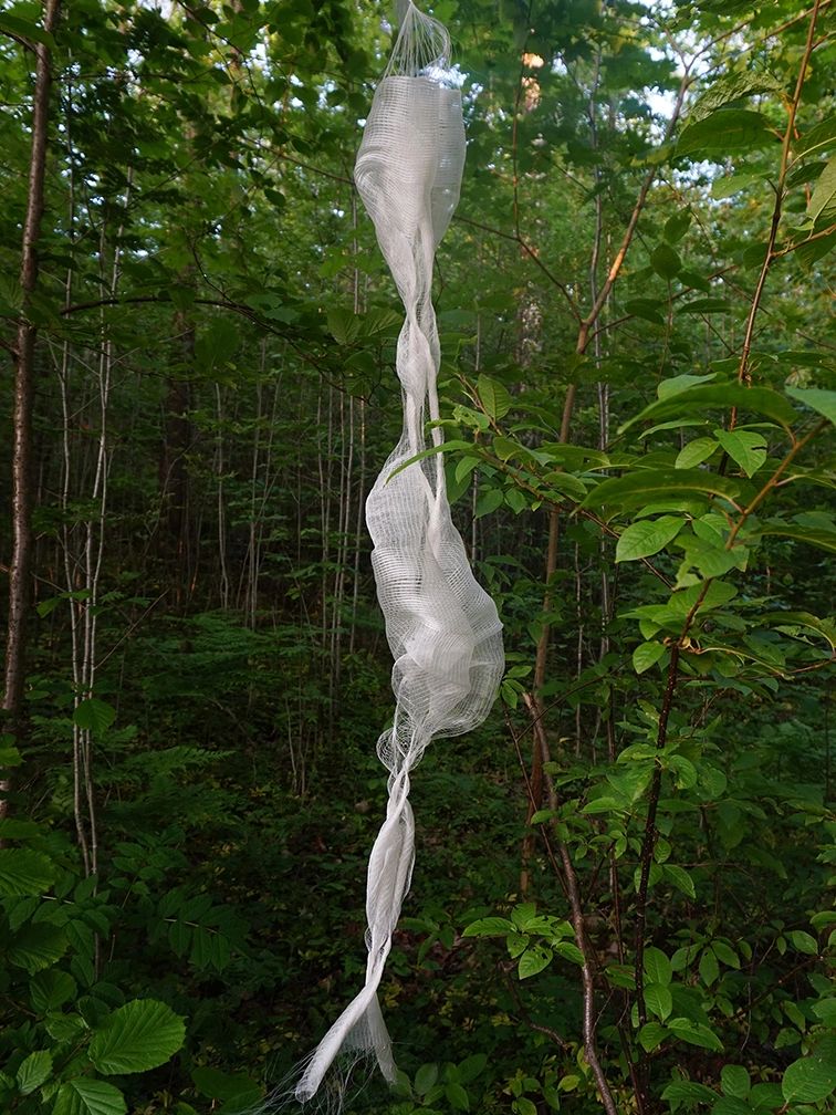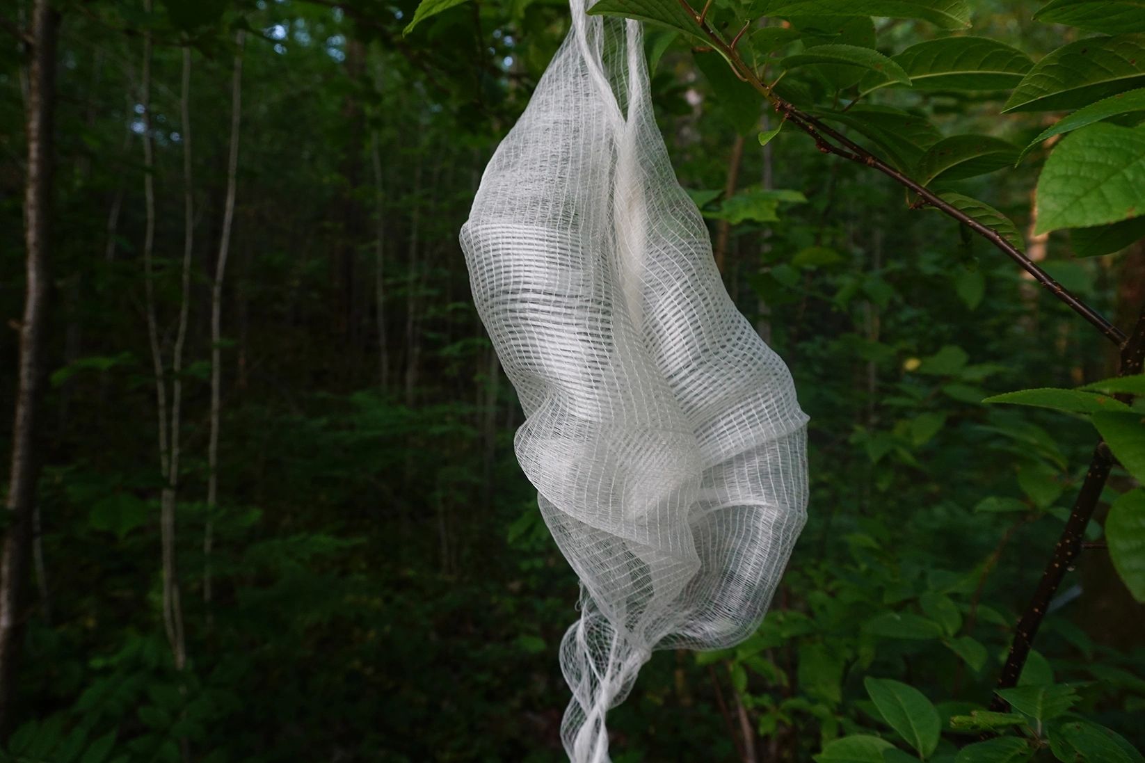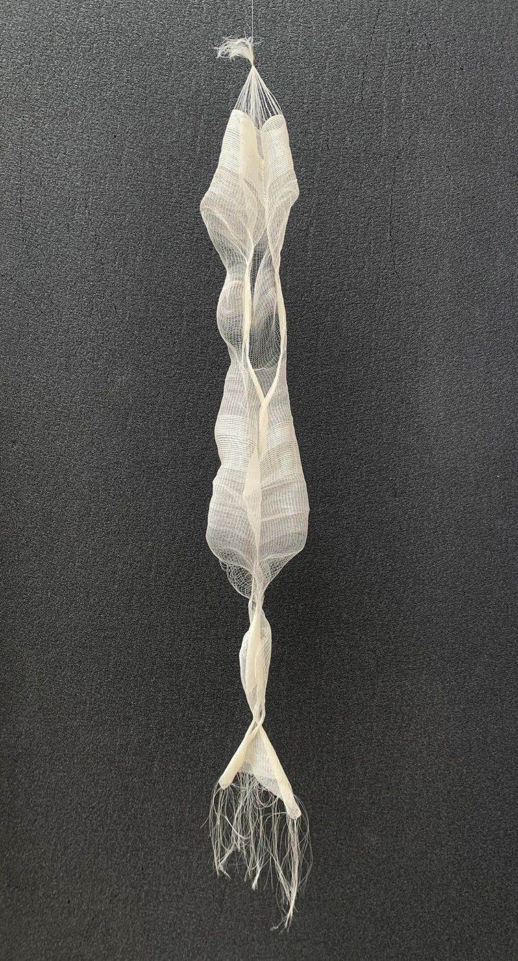 The " Curling" explores how high twisted yarn work with open borders and loose weave densities promote curling, amplified by silk’s stiffness. When the fabric is turned inside out, volume emerges through the interaction of material stiffness, high twist yarn and structure.